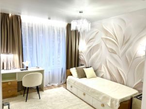 Детская комната с письменным столом, кроватью с ортопедическим матрасом , умной тумбой с подсветкой и зарядкой для гаджетов под рукой, гардеробная комната.