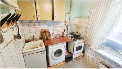 Квартира требует капитального ремонта. Балкона нет. Окно кухни выходит на козырек. Площадь квартиры соответствует действительности, указана на основании документов о собственности.