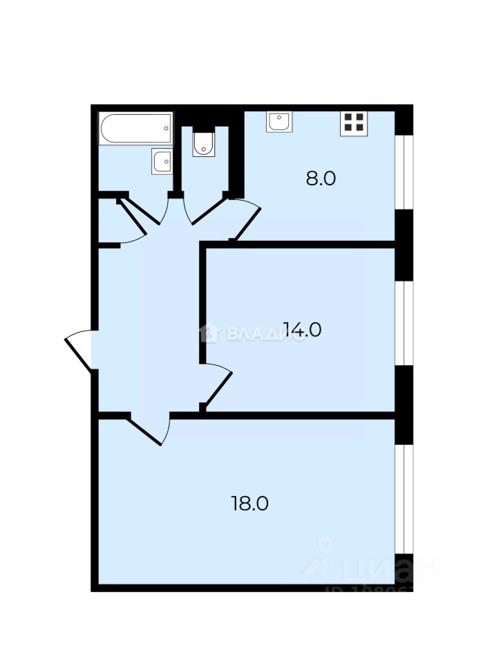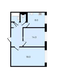 2. 2 (две) комнаты - 14+18 кв.м., окна выходят во двор;