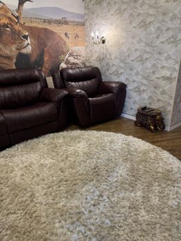 В гостиной раскладной угловой диван со спальным местом и кресло (с реклайнерами, из натуральной кожи)