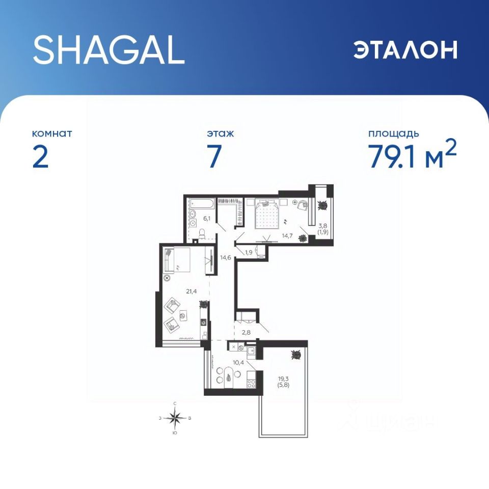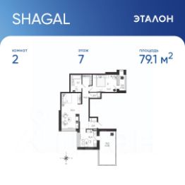Общая площадь квартиры — 79.1 кв. м, этаж 7 из 7.