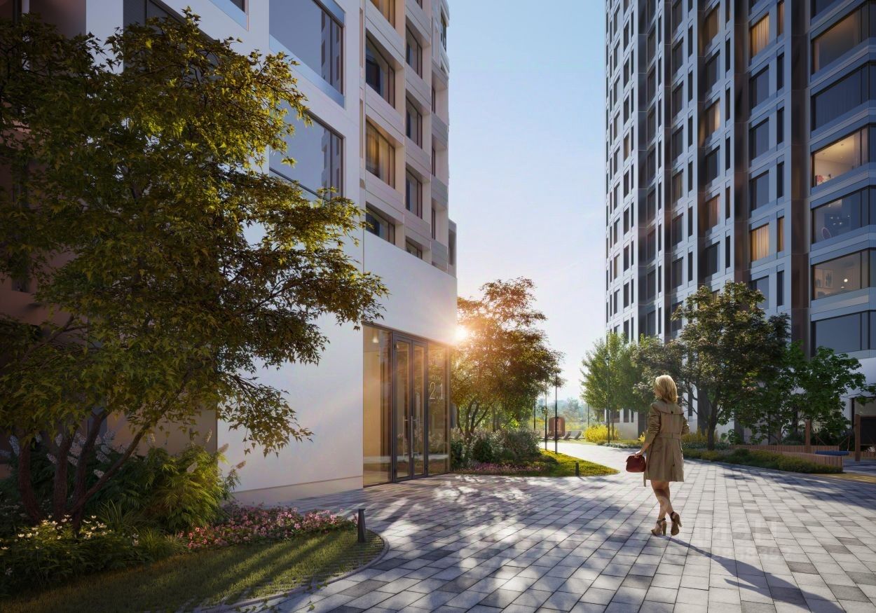 Внутренний двор благоустроен и имеет все необходимое для комфортного времяпровождения: тихие игровые пространства для детей, места для работы, площадки для йоги. Активные шумные площадки, sporthub и playhub — вынесены за пределы внутренних дворов.