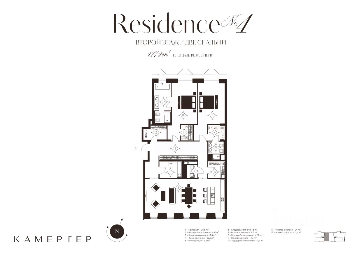 Резиденция класса deluxe в новом комплексе особняков "Камергер" в 300 метрах от Кремля. В резиденции продуманное планировочное решение: хозяйская зона с мастер-спальнями, зона для приема гостей с просторной кухней-гостиной и хозяйственные помещения. Отделка осуществляется с применением натуральных материалов: мрамора и ценных пород дерева. Подобраны элегантные детали интерьера и мягкая мебель.