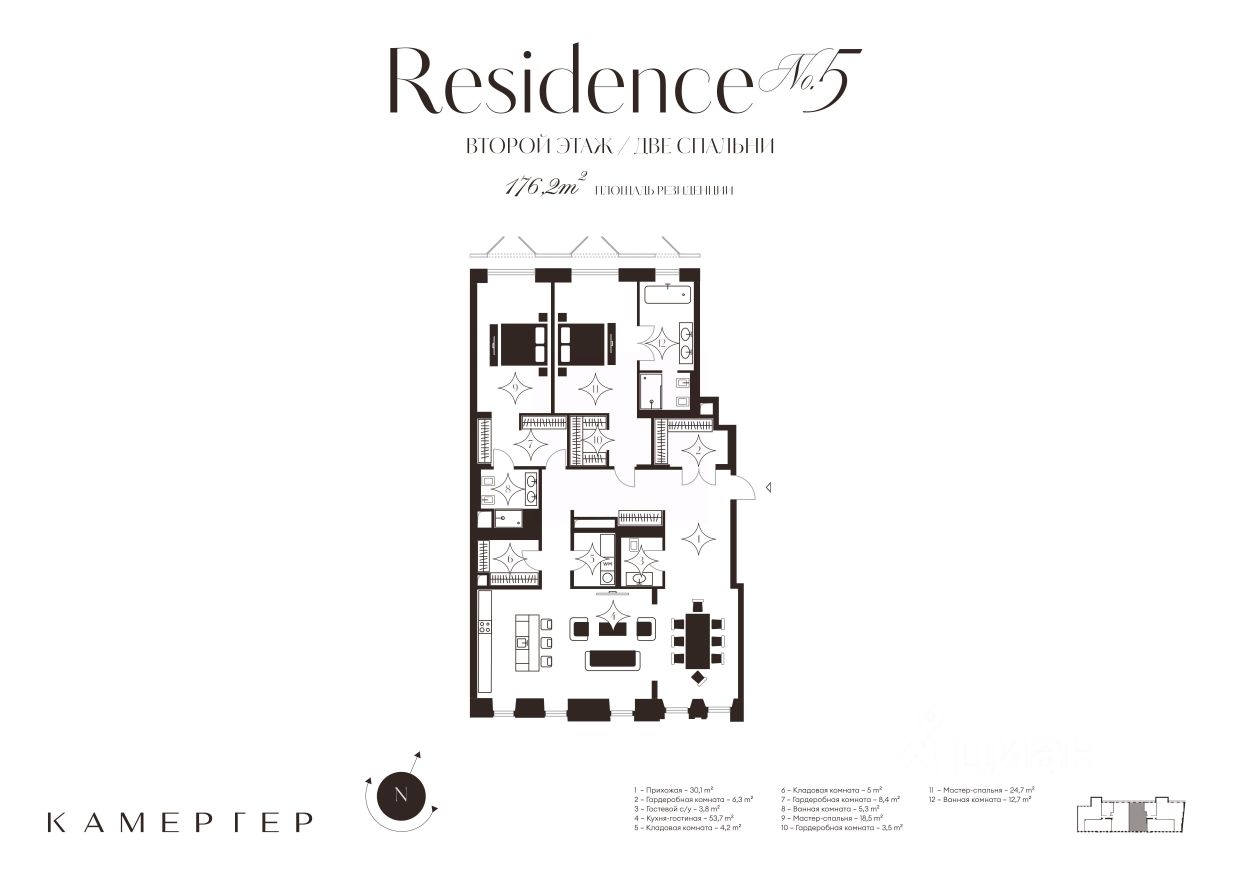 Резиденция класса deluxe в новом комплексе особняков "Камергер" в 300 метрах от Кремля. В резиденции продуманное планировочное решение: хозяйская зона с мастер-спальнями, зона для приема гостей с просторной кухней-гостиной и хозяйственные помещения. Отделка осуществляется с применением натуральных материалов: мрамора и ценных пород дерева. Подобраны элегантные детали интерьера и мягкая мебель.