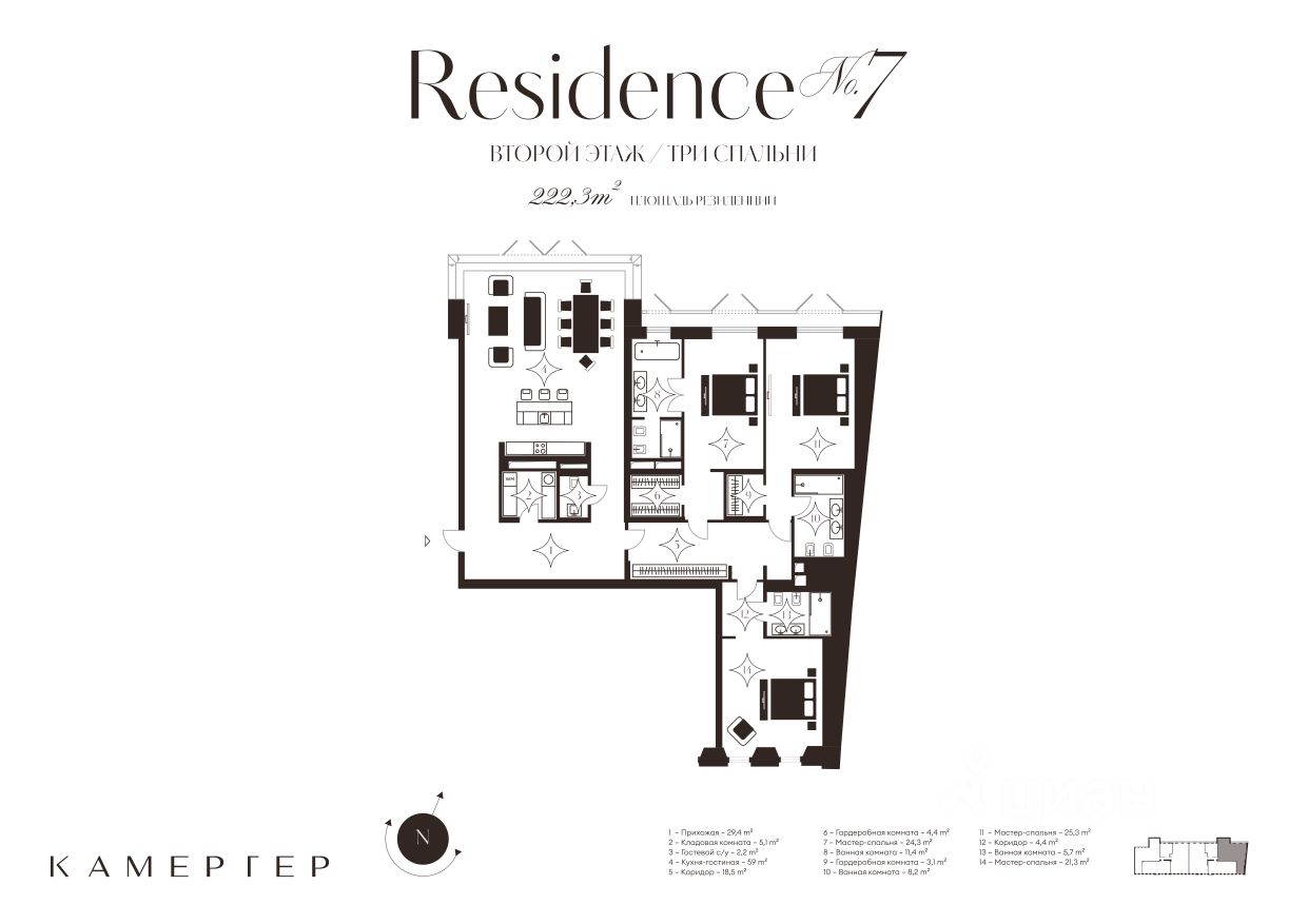 Резиденция класса deluxe в новом комплексе особняков "Камергер" в 300 метрах от Кремля. В резиденции продуманное планировочное решение: 2 просторные мастер-спальни с отдельным кабинетом, кухня-гостиная с панорамными окнами и хозяйственные помещения. Отделка осуществляется с применением натуральных материалов: мрамора и ценных пород дерева. Подобраны элегантные детали интерьера и мягкая мебель. Комплекс особняков "Камергер" расположен между Камергерском и Георгиевском переулками Москвы в 300 метрах от Кремля. Комплекс включает в себя несколько особняков: жилые особняки с резиденциями класса deluxe, офисные резиденции и историческую гостиницу "Шевалье" - главное украшение Камергерского переулка. "Камергер" — это проект, созданный на стыке классической и современной архитектуры. С внешнего контура проекта располагаются исторические фасады доходных домов, которые будут бережно реставрированы. На внутренней, скрытой от посторонних глаз, территории находятся высокотехнологичные современные особняки с броской современной архитектурой.