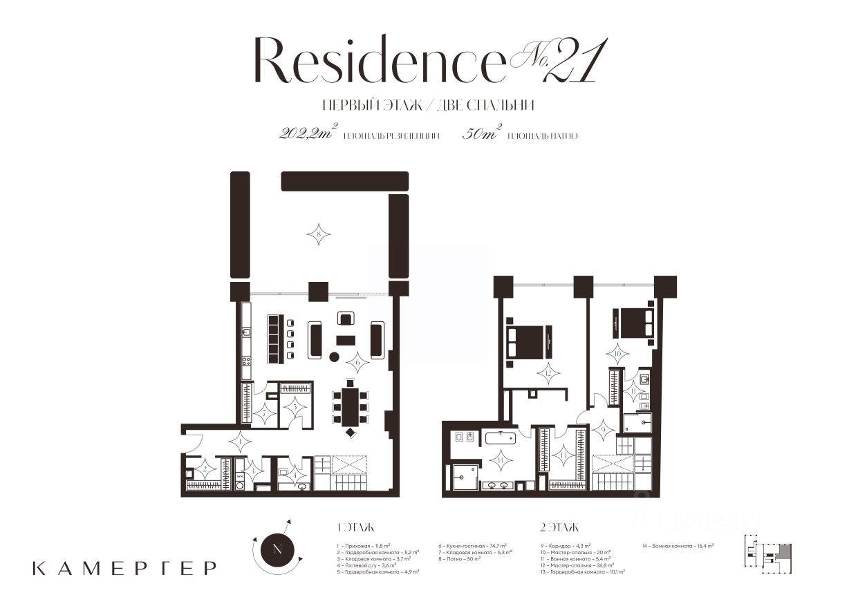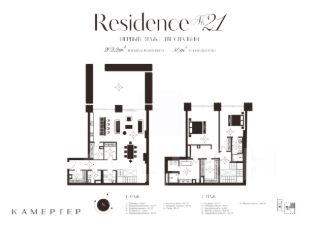 2-этажная резиденция класса deluxe в новом комплексе особняков "Камергер" в 300 метрах от Кремля. В резиденции продуманное планировочное решение. Первый этаж это просторная кухня-гостиная с выходом на огороженное патио и хозяйственные помещения. На втором этаже располагаются две просторные мастер-спальни с панорамным видом на закрытую территорию комплекса. Отделка осуществляется с применением натуральных материалов: мрамора и ценных пород дерева. Подобраны элегантные детали интерьера и мягкая мебель. Высокие потолки 3,5 метра.