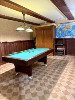 Цокольный этаж: расположена бильярдная комната с кухней, гардеробная комната - кладовая, сан.узел.