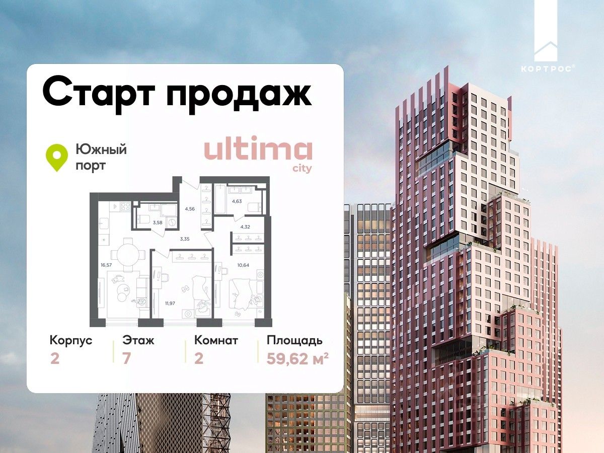 Старт продаж! Продаётся 2-комнатная квартира от застройщика ГК "КОРТРОС" в жилом комплексе бизнес-класса ULTIMAcity. Квартира расположена на 7 этаже 52 этажного корпуса 2. Общая площадь 59,62 м². Без отделки.