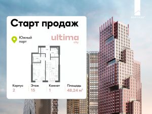 Старт продаж! Продаётся 1-комнатная квартира от застройщика ГК "КОРТРОС" в жилом комплексе бизнес-класса ULTIMAcity. Квартира расположена на 15 этаже 52 этажного корпуса 2. Общая площадь 48,24 м². Без отделки.