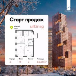 Старт продаж! Продаётся 2-комнатная квартира от застройщика ГК "КОРТРОС" в жилом комплексе бизнес-класса ULTIMAcity. Квартира расположена на 15 этаже 52 этажного корпуса 2. Общая площадь 55,60 м². Без отделки.