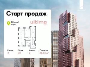 Старт продаж! Продаётся 2-комнатная квартира от застройщика ГК "КОРТРОС" в жилом комплексе бизнес-класса ULTIMAcity. Квартира расположена на 31 этаже 52 этажного корпуса 2. Общая площадь 86,01 м². Без отделки.