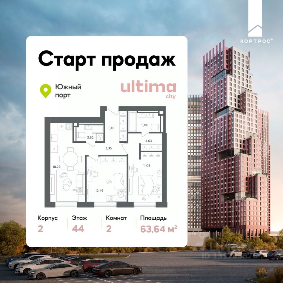 Старт продаж! Продаётся 2-комнатная квартира от застройщика ГК "КОРТРОС" в жилом комплексе бизнес-класса ULTIMAcity. Квартира расположена на 44 этаже 52 этажного корпуса 2. Общая площадь 63,64 м². Без отделки.