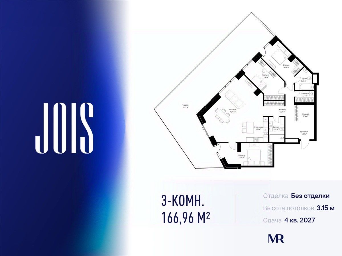JOIS это премиальный жилой комплекс от девелопера MR в районе Хорошёво-Мнёвники. Он включает несколько эффектных небоскрёбов высотой 47-56 этажей, эксклюзивные форматы квартир с панорамным остеклением, подземный двухуровневый паркинг на 239 м/м, собственную приватную инфраструктуру, закрытый ландшафтный парк 2,3 Га с функциональным зонированием и охраняемой территорией. Над проектом работали лучшие команды международных агентств с многолетним опытом: Genpro, S&P, iLight International и другие.