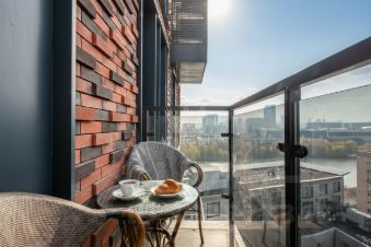 Видовая квартира с тремя спальнями в комплексе бизнес-класса "Резиденции композиторов" в двух минутах ходьбы от Павелецкой набережной. Квартира площадью 103 м² расположена на тринадцатом этаже в корпусе 1. Интерьер оформлен в современном стиле с использованием фактуры мрамора и дерева. Установлена система индивидуального кондиционирования.