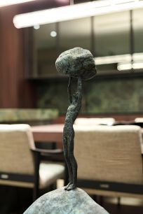 - двери скрытого монтажа Lualdy Italy: короб выполнен из анодированной бронзы, фасады из матового стекла, шпона или бронзового зеркала в зависимости от помещения;