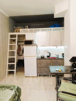 Студия оборудована всем необходимым для жизни: современная кухня, мебель, техника. В квартире всегда тихо и спокойно.