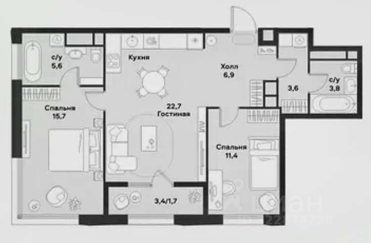 22,7 м²
