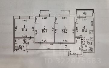 Общая площадь 79,8 - кв.м. с учетом лоджии, жилая - 43,2 кв.м., площадь кухни - 11,4 кв.м., 2 санузла.