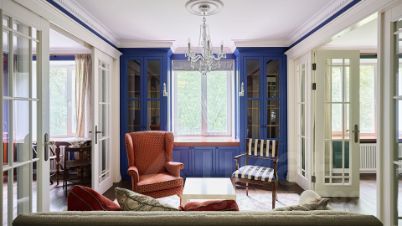 Выполнена премиальная дизайнерская отделка в стиле современной классики с использованием ярких акцентов.