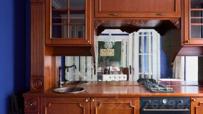 - встроенные книжные шкафы, стеллажи, кухня, двери, подоконники, комод в ванной: дуб, столярная мастерская Штихель и Мейсель (Leviev Group)
