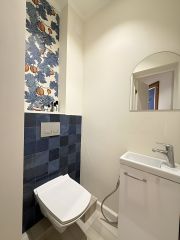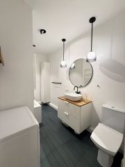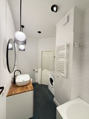 Отдельная большая ванная комната 5,9м2 с унитазом. И отдельный туалет 1,5м2.В квартире сделан качественный и стильный ремонт и отделка.