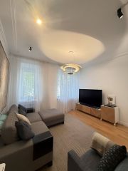 Высокие потолки 3,2м.Очень теплая. Компактная линейная планировка.