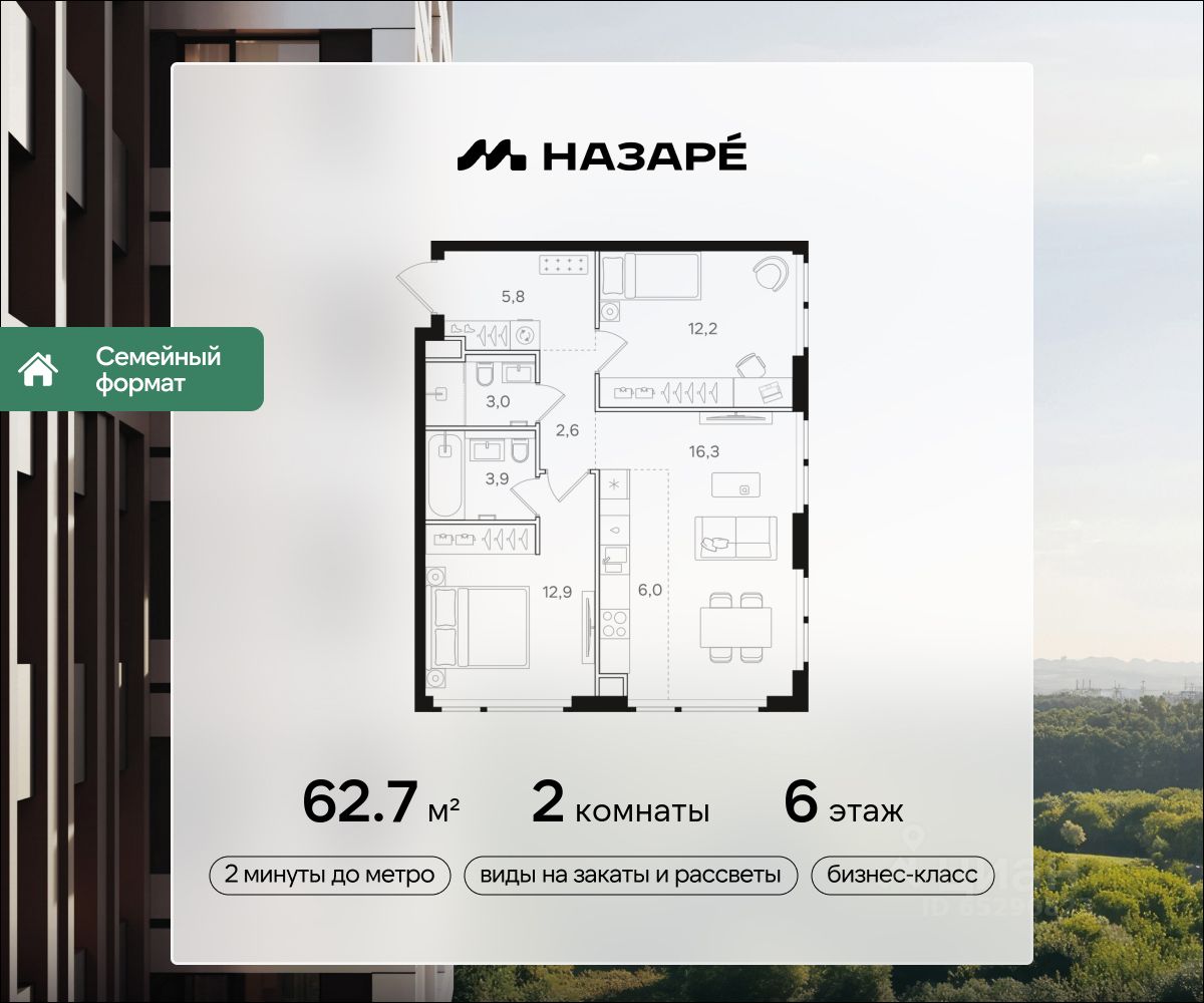 Продается 2-комнатная квартира в ЖК "НАЗАРЕ'"