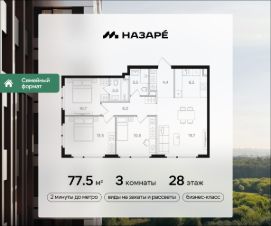 Предлагается квартира площадью 77.50 кв. м в новом современном квартале на востоке Москвы, прямо у станций метро и МЦК "Бульвар Рокоссовского". Квартира располагается в корпусе 3 на 28 этаже комплекса бизнес-класса "НАЗАРЕ'".