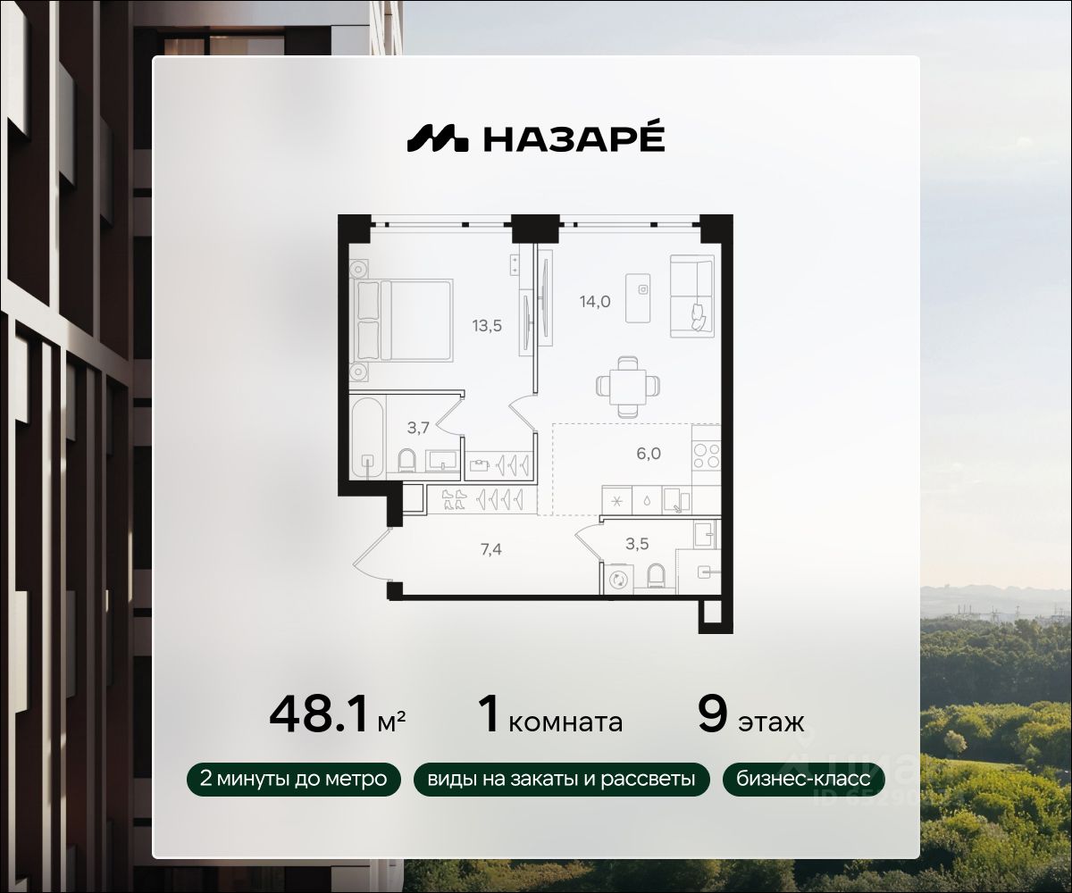 Предлагается квартира площадью 48.10 кв. м в новом современном квартале на востоке Москвы, прямо у станций метро и МЦК "Бульвар Рокоссовского". Квартира располагается в корпусе 5 на 9 этаже комплекса бизнес-класса "НАЗАРЕ'".