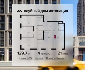 В продаже 4-комнатная квартира в готовом клубном доме бизнес-класса "Интонация". Квартира с высокими потолками с просторной кухней и постирочной. Условия покупки: - выгода до 7,4 млн - семейная ипотека - рассрочка на 6 месяцев - Trade-in "Интонация" состоит из двух 21-этажных корпусов и приватной внутренней территории. На стилобате расположен ландшафтный сад с авторским благоустройством. В продаже финальный пул квартир бизнес-класса с мастер-спальнями, возможностью установки камина, окнами в ванных комнатах, увеличенной высотой потолков, а также просторными террасами и лоджиями. "Интонация" расположена в экологичном районе Щукино на северо-западе Москвы. Вокруг Щукинский лесопарк, Всехсвятская роща и парк "Покровское-Стрешнево". Одно из главных преимуществ дома - сочетание близости к природе и развитой инфраструктуры: - до метро "Щукинская" - 10 минут пешком - до центра - 10 минут на автомобиле Рядом детские сады и школы, включая знаменитую Курчатовскую. Недалеко расположены корпуса Финансового университета и других ведущих вузов. В пешей доступности - поликлиники, супермаркеты, фитнес-центры и спортивные секции. Собственная инфраструктура "Интонации" - ресторан итальянской кухни, студия фитнеса и пилатеса, супермаркеты, один из которых круглосуточный, салон красоты, барбершоп и химчистка. Приватная территория "Интонации" разделена на две тематические зоны: внутренний двор с детскими и спортивными площадками и ландшафтный сад на террасе. Главным акцентом стал парящий водоем с подвижной гладью. Двухуровневый паркинг рассчитан на 186 автомобилей и 27 гостевых мест. Есть возможность зарядки электромобилей, удобный подъезд для грузового транспорта, келлеры для хранения личных вещей и помещение для велосипедов.