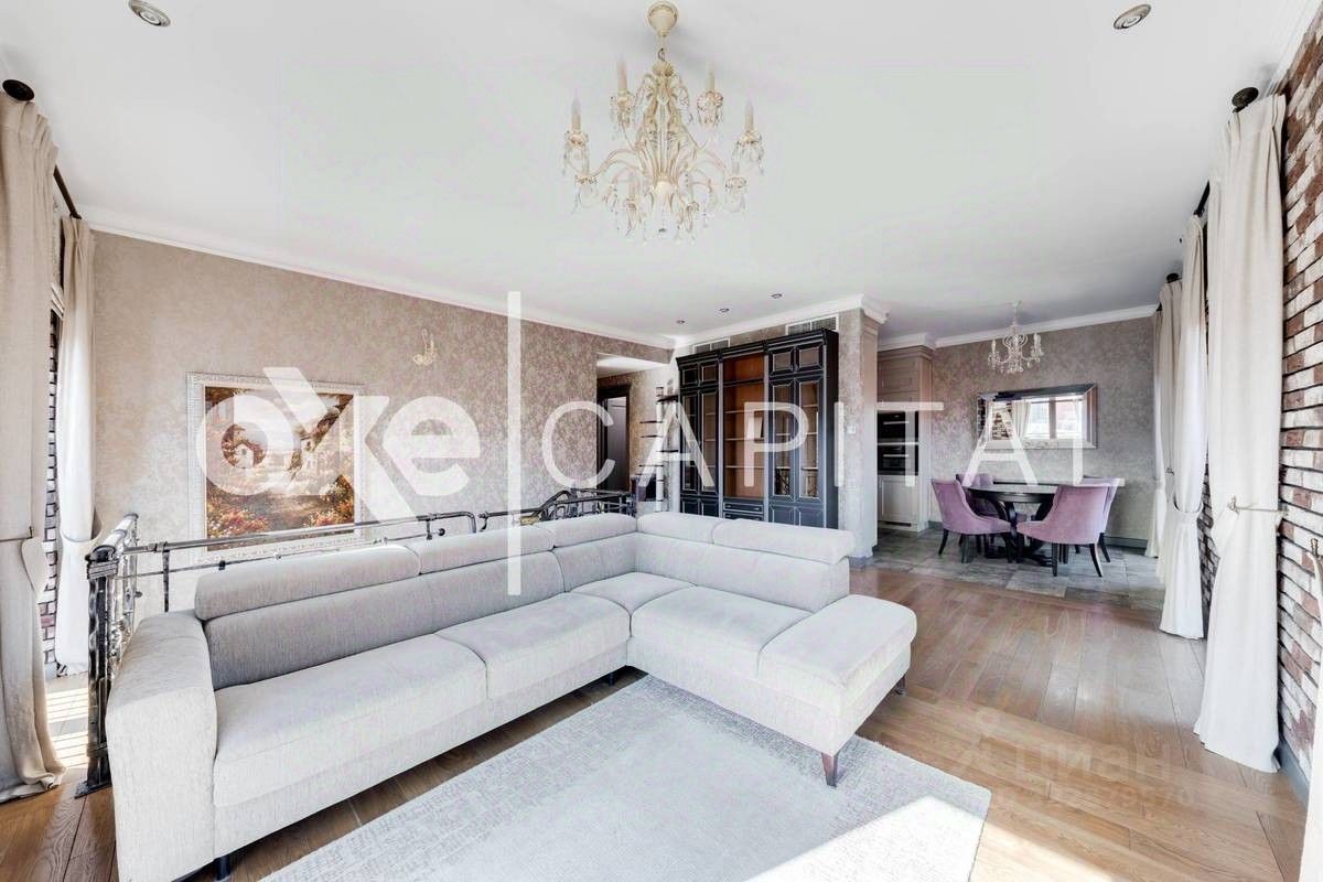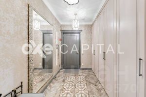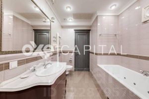 В квартире два уровня: столовая, гостиная , три мастер-спальни с санузлами, кабинет, гостевой санузел, гардеробная система с обустроенной современной гарнитурой .