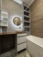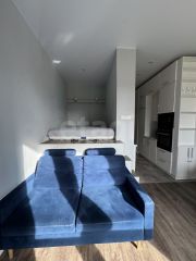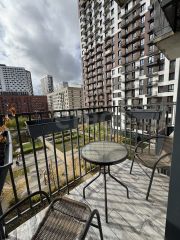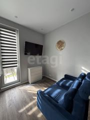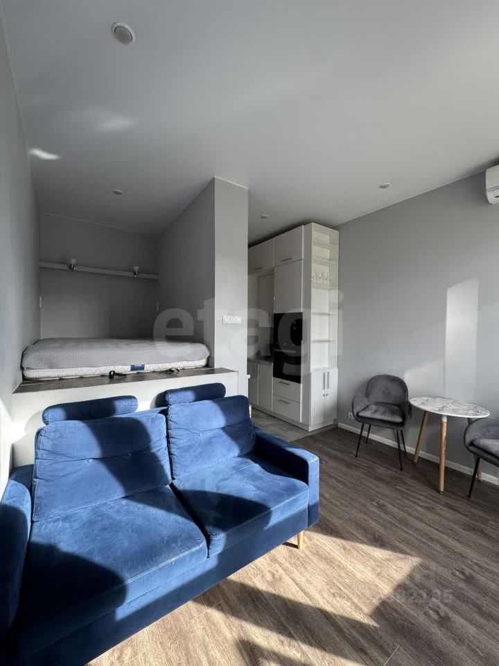 Уютная и светлая студия в ЖК Петр I,  с французским  балконом. Студия площадью 25.4  м2 на 5 этаже, окна во двор. Студия укомплектована всей необходимой мебелью и техникой, много мест для хранения, установлен кондиционер.