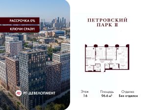 Продаётся 3-комнатная квартира 96.6 кв.м. в ЖК "Петровский парк II" на 16-м этаже 25 этажного дома.