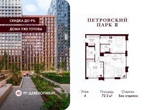 Продаётся 2-комнатная квартира 72,2 кв.м. в ЖК "Петровский парк II" на 4-м этаже 24 этажного дома.