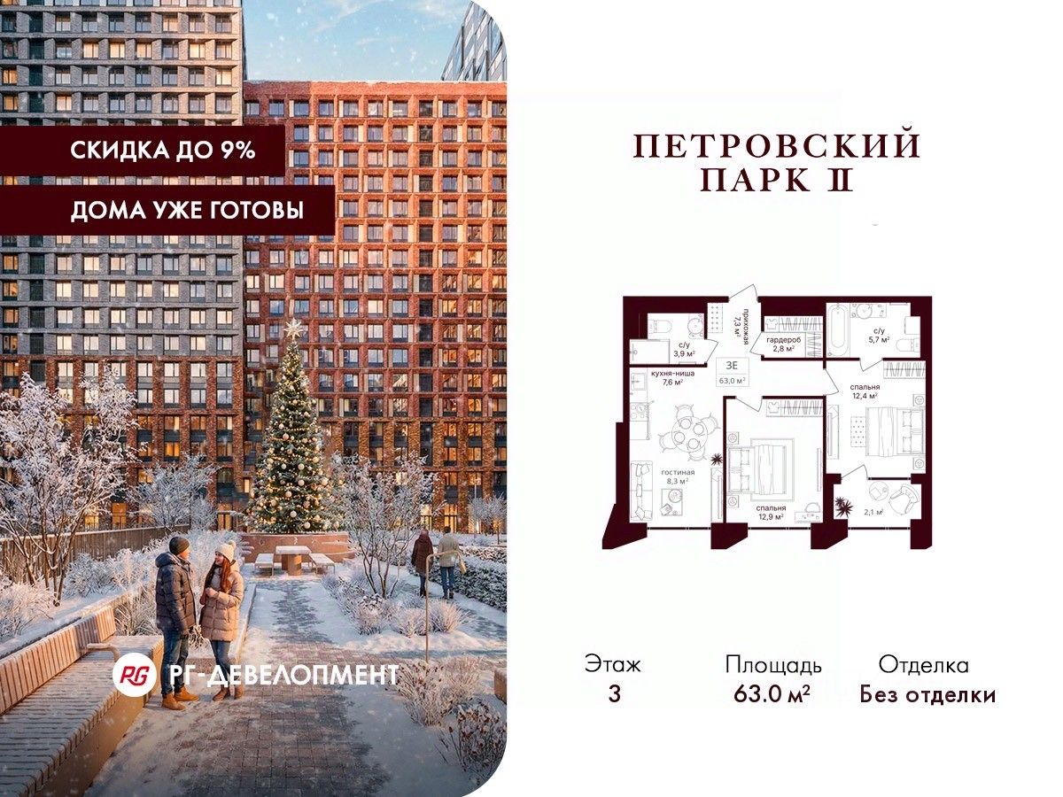 Новогодняя Скидка 9% при покупке квартиры! Цена указана с учетом максимального размера скидки.