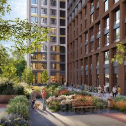 На закрытой территории зеленые зоны с цветниками, места для отдыха, спортивные и игровые площадки.
