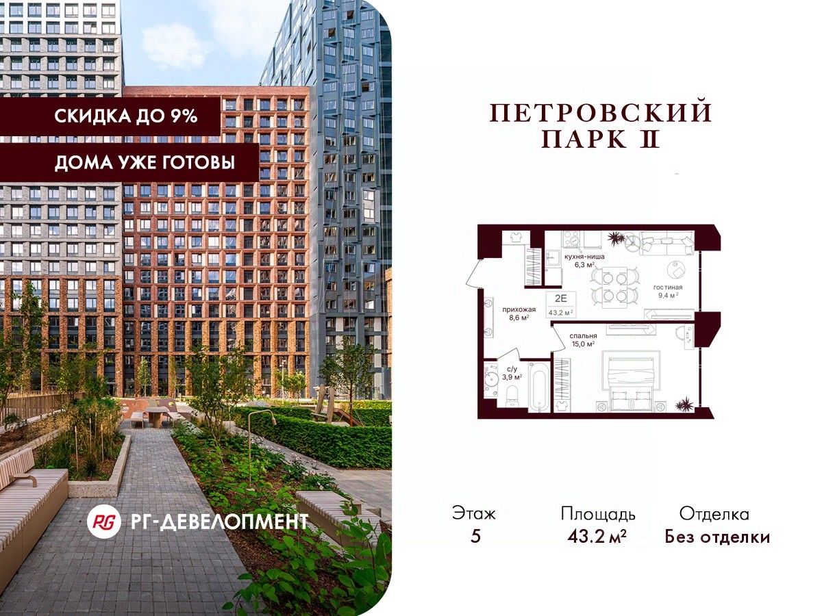 Скидка 9% при покупке квартиры! Цена указана с учетом максимального размера скидки.