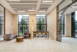 Эстетика архитектурных форм продолжается в интерьере внутренних пространств - двух центральных лобби и входных группах.