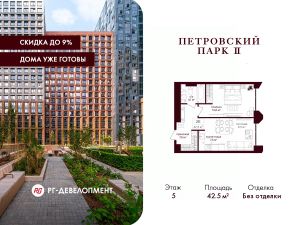 Продаётся 1-комнатная квартира 42,5 кв.м. в ЖК "Петровский парк II" на 5-м этаже 17 этажного дома.
