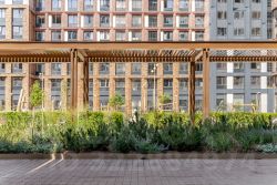 На закрытой территории зеленые зоны с цветниками, места для отдыха, спортивные и игровые площадки.