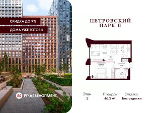 Продаётся 1-комнатная квартира 46,2 кв.м. в ЖК "Петровский парк II" на 2-м этаже 15 этажного дома.