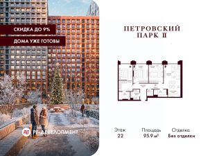 Продаётся 3-комнатная квартира 95.9 кв.м. в ЖК "Петровский парк II" на 22-м этаже 25 этажного дома.