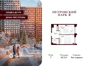 Продаётся 1-комнатная квартира 43.1 кв.м. в ЖК "Петровский парк II" на 7-м этаже 19 этажного дома.