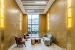 Эстетика архитектурных форм продолжается в интерьере внутренних пространств - двух центральных лобби и входных группах.