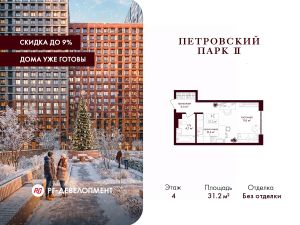 Продаётся Студия 31,2 кв.м. в ЖК "Петровский парк II" на 4-м этаже 25 этажного дома.