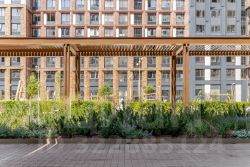На закрытой территории зеленые зоны с цветниками, места для отдыха, спортивные и игровые площадки.