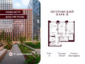 Продаётся 2-комнатная квартира 72,5 кв.м. в ЖК "Петровский парк II" на 5-м этаже 21 этажного дома.