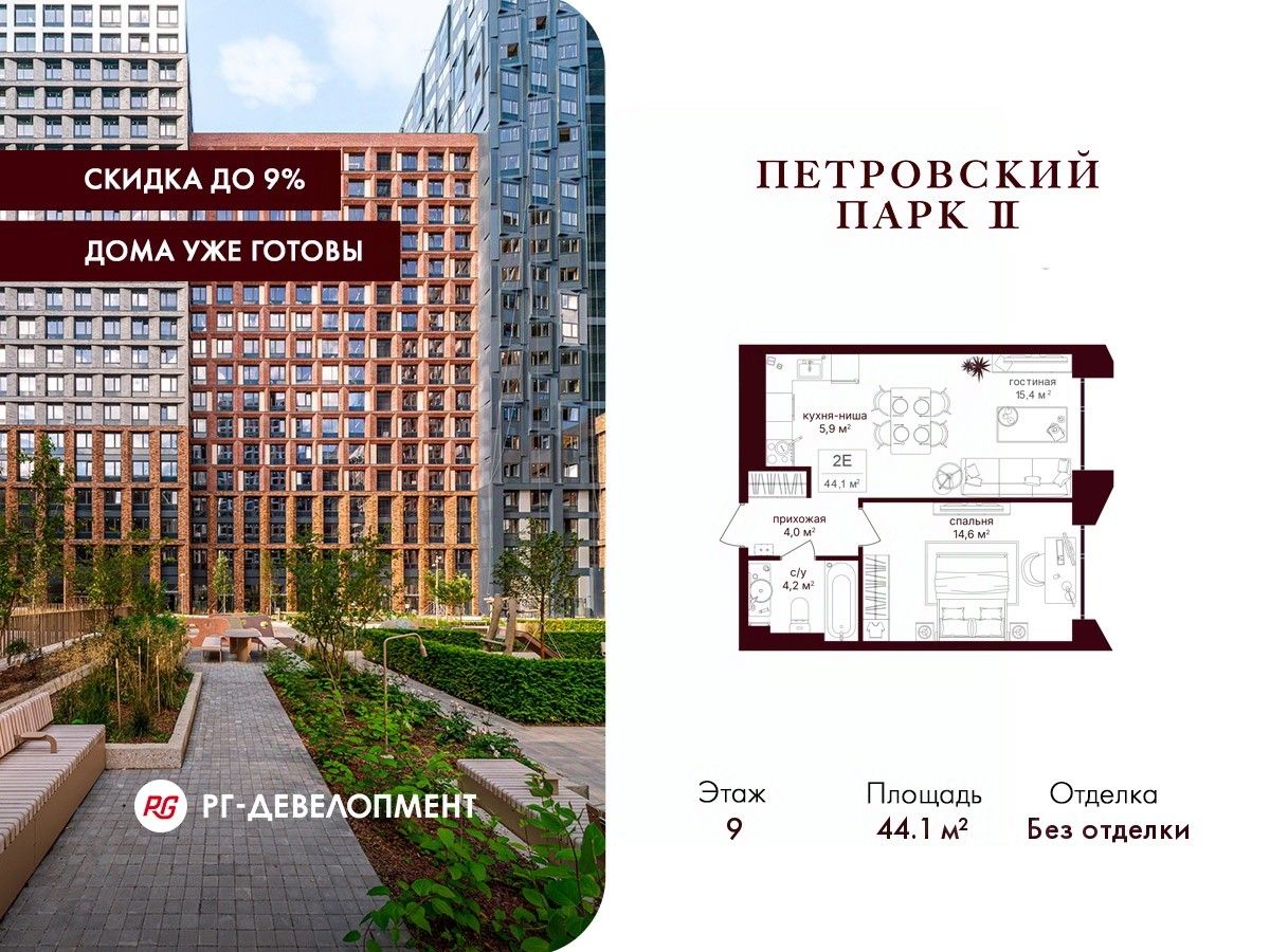Скидка 9% при покупке квартиры! Цена указана с учетом максимального размера скидки.