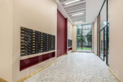 Эстетика архитектурных форм продолжается в интерьере внутренних пространств - двух центральных лобби и входных группах.