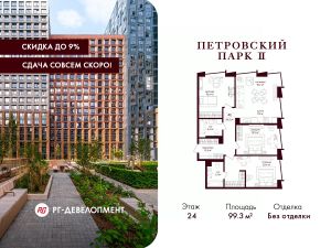 Продаётся 3-комнатная квартира 99,3 кв.м. в ЖК "Петровский парк II" на 24-м этаже 25 этажного дома.